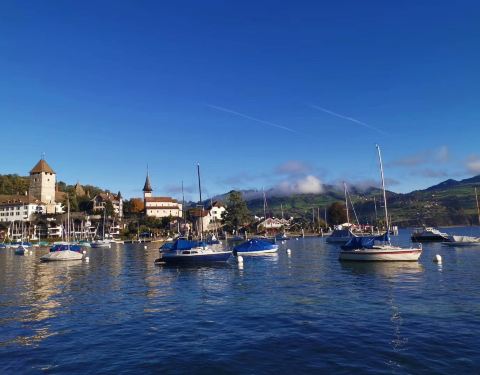 施皮茨小镇简直是瑞士最美小镇啊!天天面对这么湛蓝的湖水,大概能心情舒畅活到九十九岁吧施皮茨小镇简直是瑞士最美小镇啊!天天面对这么湛蓝的湖水,大概能心情舒畅活到九十九岁吧。交通很方便的,可以用通票坐火车到达小镇上
