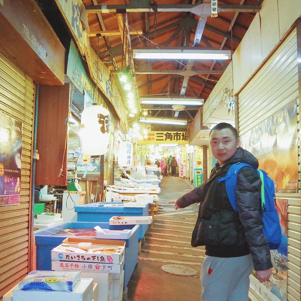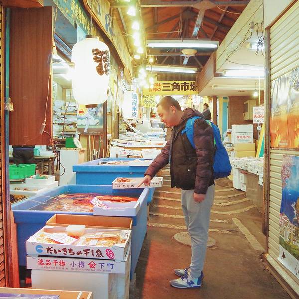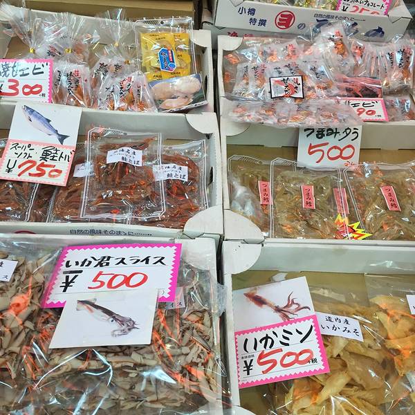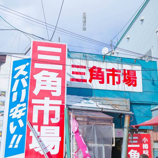 我是大概1点到的小樽站,出站后往左边看即可看到三角市场。三角市场是主要卖海鲜和海鲜干货的市场,里面也有饮食店