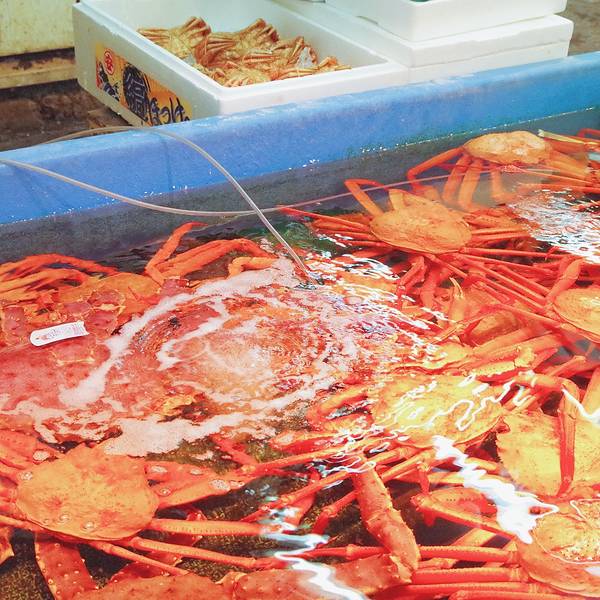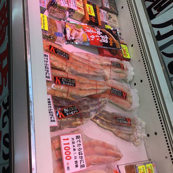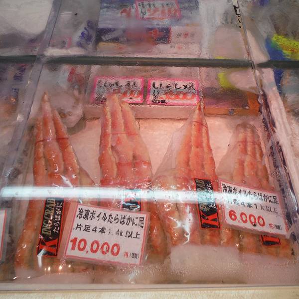 车站旁的三角市场是海鲜市場,如果有兴趣买海鲜的可以到这里来走一走! 这些帝王蟹真的不便宜喔