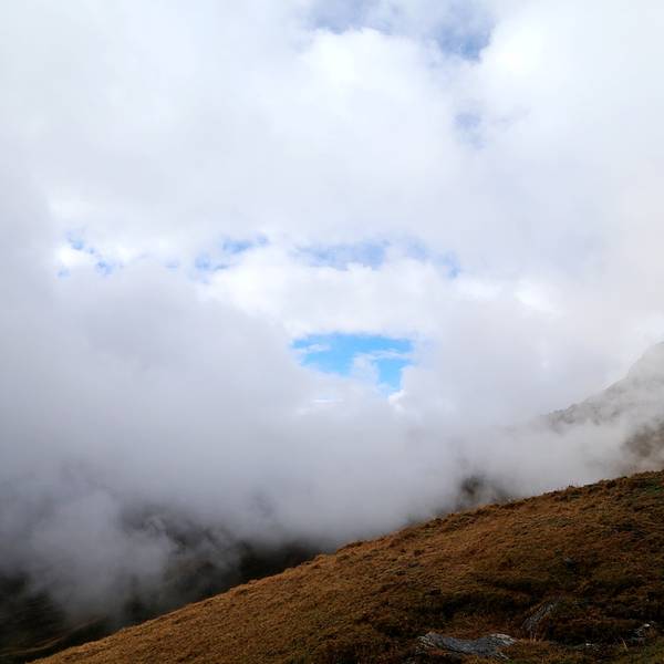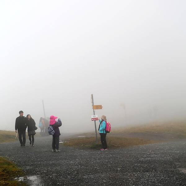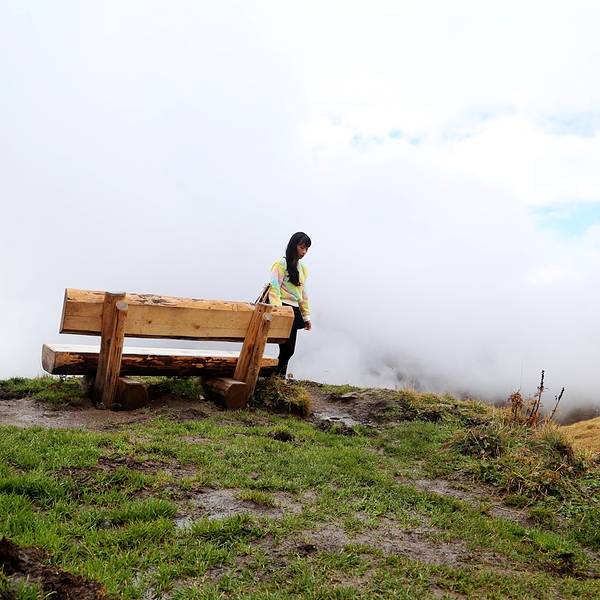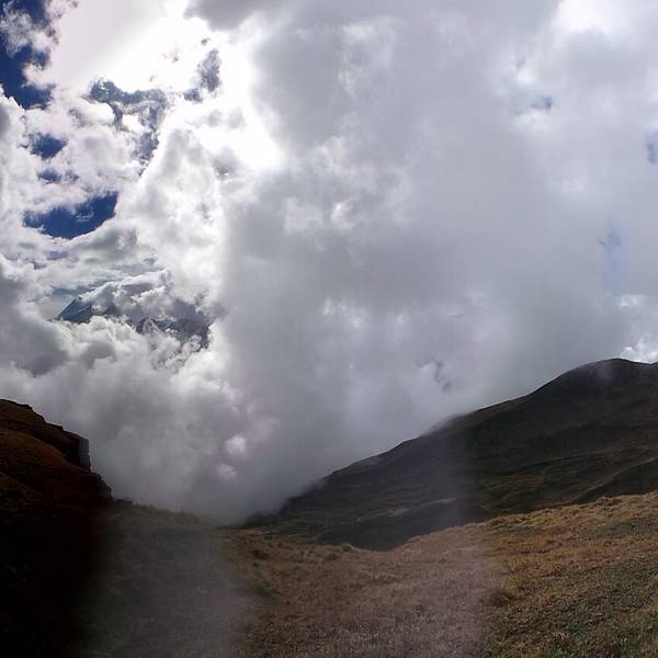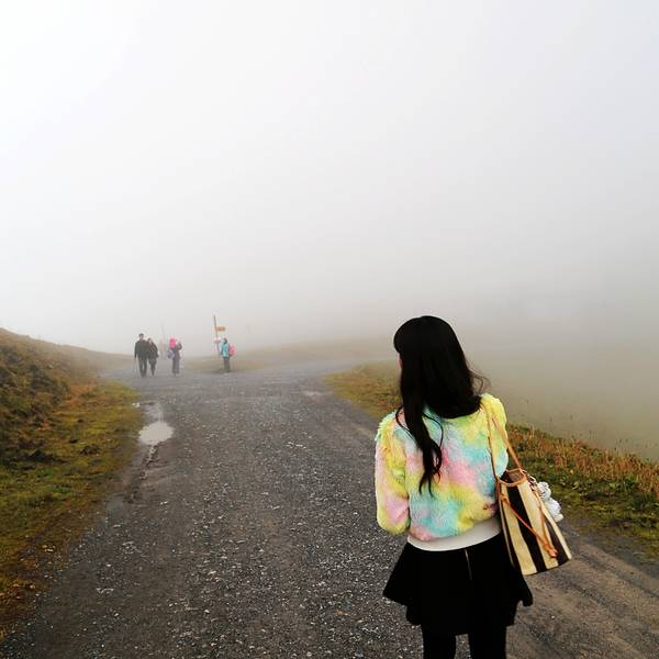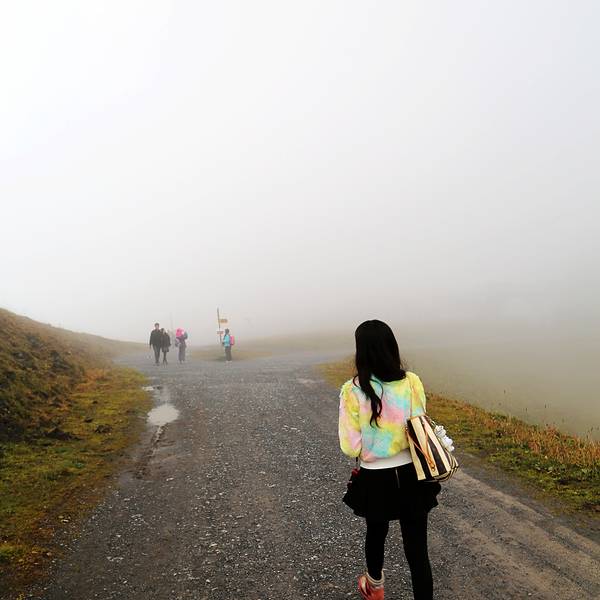 不一会就来到山顶,哇塞,和下面雨过天晴的仙境不同,这上面仙过头了,仙得啥都看不到了。