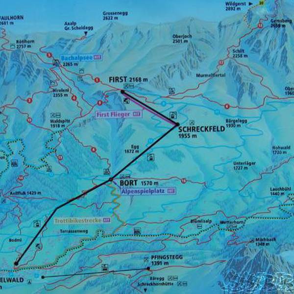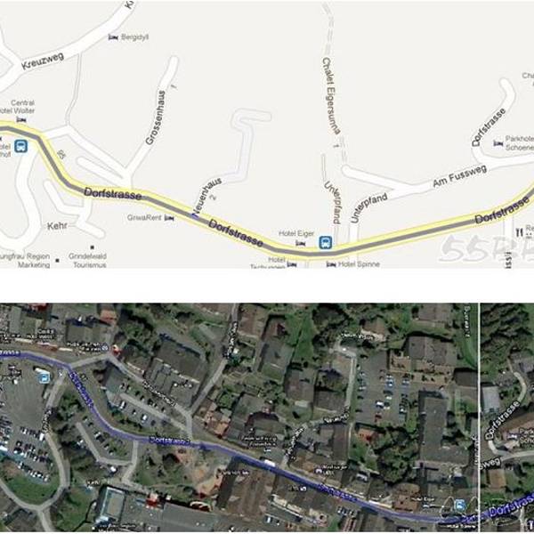 A: Grindelwald火车站→B:GrindelwaldBGF徒步路线图
