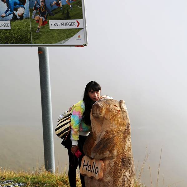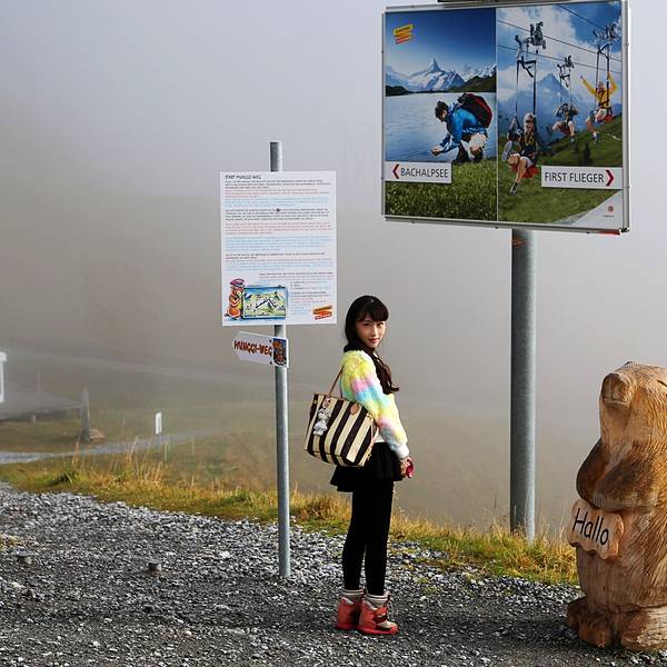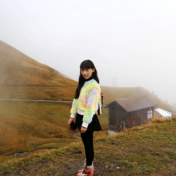 Bort的工作人员给我们说他们这一站外面的景色也很美,让我们边玩边等。尤其是在这个季节!美极了终于找到了缆车站,于是我们再次使用了省钱神器——半价卡,购买了两张通往First的半价缆车往返票(57瑞郎/2人)。到First的缆车据说是全欧洲海拔最高缆车路线哦,车程大概是半个小时,First的海拔是2000多米。在...终于找到了缆车站,于是我们再次使用了省钱神器——半价卡,购买了两张通往First的半价缆车往返票(57瑞郎/2人)。到First的缆车据说是全欧洲海拔最高缆车路线哦,车程大概是半个小时,First的海拔是2000多米。在这里我们有一个小插曲,在买票的时候因为时间比较赶,我也比较着急,一不小心把韩老师的手机落在在买票的前台。知道缆车开车我们才发现,手机丢了。。。把我们急的啊,我们全程导航全靠着这个大华为手机呢,丢了可怎么办呢。于是也没有心思拍照了,我一边自责一边还是自责。。做了大概10分钟的缆车,到了一个中间的小站Bort,我们需要在此站下车,然后再次刷卡上车。我们下车后,给工作人员描述了我们的状况,工作人员立刻给格林德瓦售票处打了电话,然后告诉我们手机还在呢,让我们别担心,并且告诉我们15分钟后他们有工作人员会亲自把手机给我们送过来。我们感动极了,真心觉得好人真多!Bort的工作人员给我们说他们这一站外面的景色也很美,让我们边玩边等。于是原本自责而沉闷的心情一扫而空!让我们来赏景吧!
