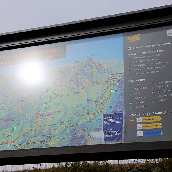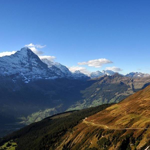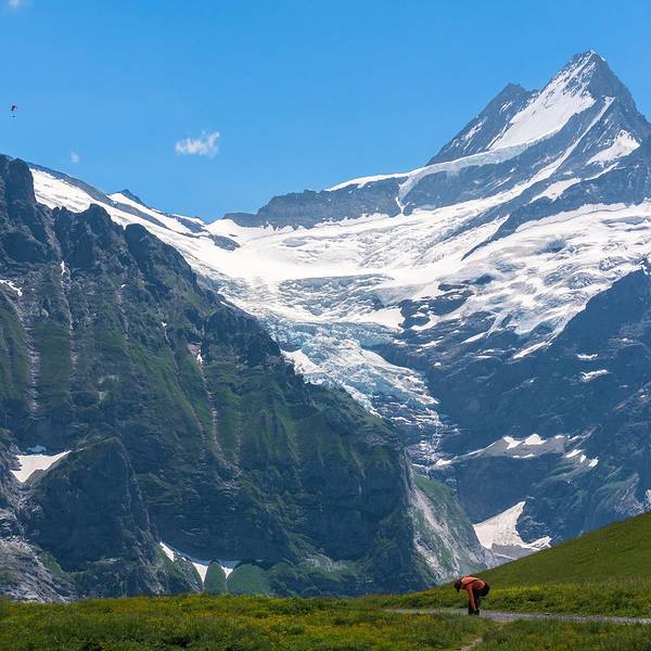 First山位于格林德瓦(Grindelwald)东北边的一座山头上,是少女峰地区主要的滑雪场所之一,也是欣赏植根于峡谷中的冰河美景的观景点,而且沿途的山间风景同样如诗如画。徒步观赏高山景致First山周边有不少步行道,可以从一个高点走到下一个高点。在这里你会看到海拔四千米的高山景致和透亮如镜的天池,而茂密的山地草场同样让登山爱好者和散步的游客赞叹不已。First Flieger飞索 在First山高空缆车站附近有知名的First Flieger飞索项目,这种速降椅可以让四个人同时沿着索道在空中滑翔,全程800米,时速高达84公里/小时。这项体验活动安全而刺激,老少咸宜。此外,喜欢骑行的朋友也可以选择骑自行车在山间探索。