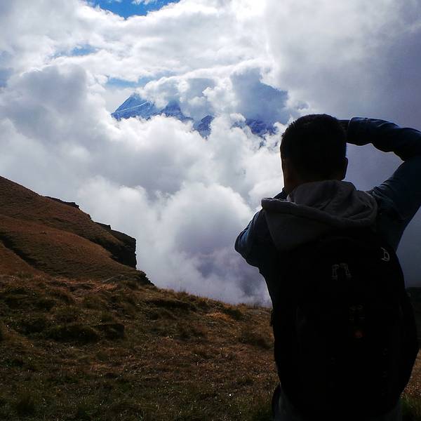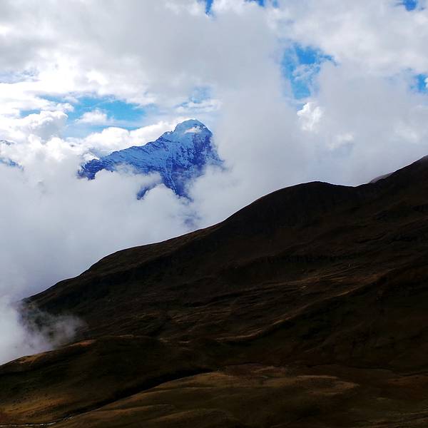 正在建一个cliff walk,就像华山那样,围绕着山峰建一个走道,吓唬自己的。说是8月份开通,可能现在已经可以走人了。接着往前走远处的山峰在云雾中时隐时现一个多小时走到湖边团客开始铺开,吃东西。上面的蚊子不少。因为有风,而且对面山上有云遮挡,也看不到雪山倒影了。景色还不错,不如路上漂亮。