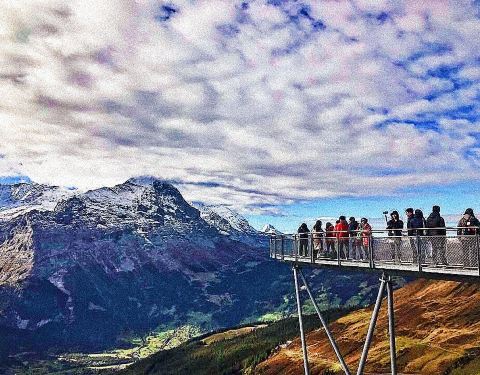 从格林瓦德搭乘菲斯特空中缆车到费尔斯特,附近都是高耸而美丽的山峦,山巅布满一片片白色的积雪,到...从格林瓦德搭乘菲斯特空中缆车到费尔斯特,附近都是高耸而美丽的山峦,山巅布满一片片白色的积雪,到达缆车的终点站就是费尔斯特,海拔2168米,在缆车站附近有一个悬崖步道是欣赏费尔斯特的绝佳观点,在步道的最...从格林瓦德搭乘菲斯特空中缆车到费尔斯特,附近都是高耸而美丽的山峦,山巅布满一片片白色的积雪,到达缆车的终点站就是费尔斯特,海拔2168米,在缆车站附近有一个悬崖步道是欣赏费尔斯特的绝佳观点,在步道的最末端就是天空步道,步道底部是利用强化玻璃构成,可以挑战大家心脏的强度,惊吓着看着陡峭的山壁高度。 展开