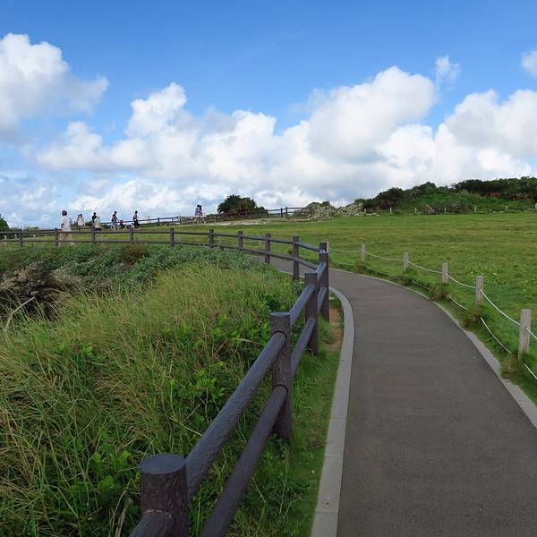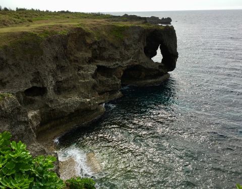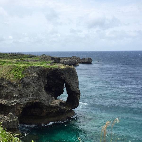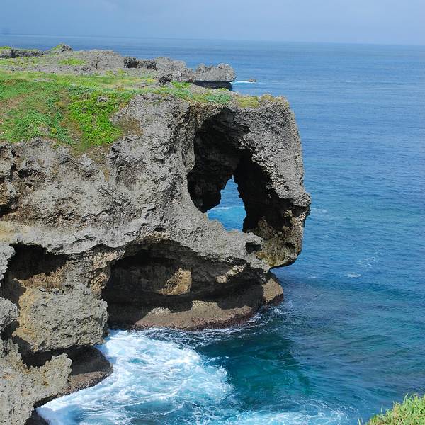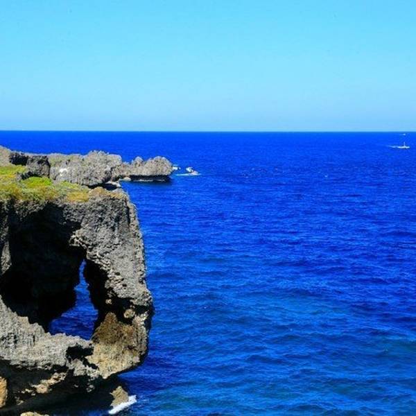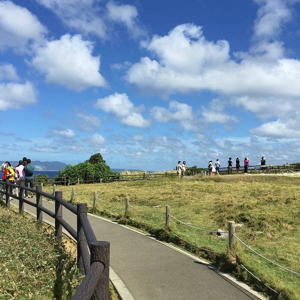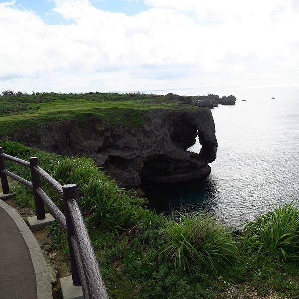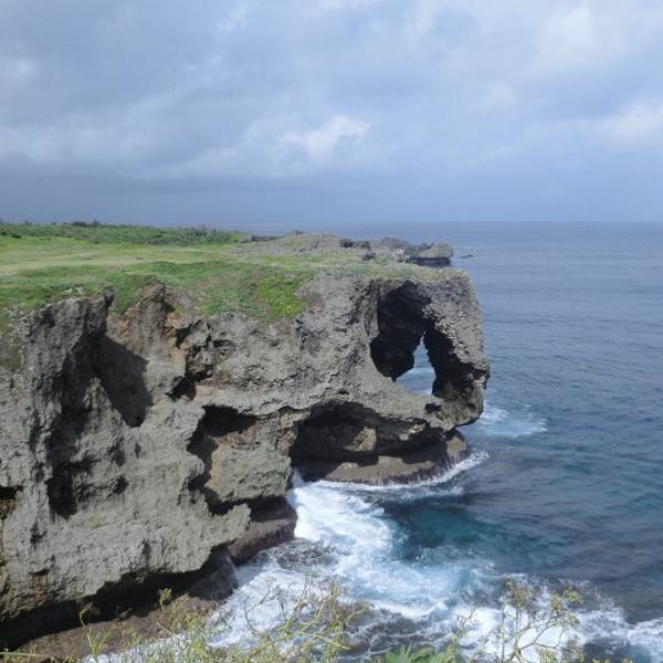 但凡听到“万座毛”,每个人都会被这个奇怪的名字而感到纳闷。其实,“万座”的意思就是“万人坐下”,“毛”是冲绳的方言,意思是草原、空地。因此“万座毛”指的便是可以容纳万人坐下的大草坪。 这个美丽的大草坪位于海边的一座断崖之上,周围的植物群落被冲绳县指定为天然纪念物。从那里可以欣赏海天一色,也可以俯视悬崖峭壁下的珊瑚礁和惊涛拍岸的壮丽景致。万座毛其实很小,半环形绕一圈走下来可能就10分钟,标志性景点是断崖绝壁形似大象鼻子,和桂林的象鼻山景区有点相似。从这里可以看到珊瑚礁和惊涛拍岸的画面,而陆地上还有一片片的绿色植物群落。而这里也是香港电影《恋战冲绳》、韩剧《没关系,是爱情啊》等影视剧作品的取景地。