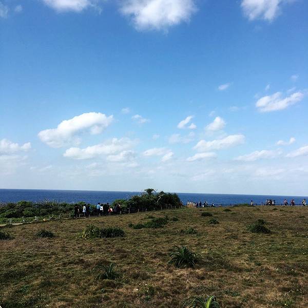 3)体验:首先看到的是海边的巨石,类似桂林的象鼻山,沿岸海水非常清澈,有人在海上游船。万座毛周边成片草原,配合白云飘着,是很不错的拍照地点。