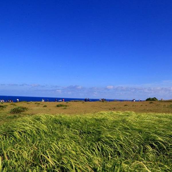 ...绳 县内数一数二的景观,位于海边的一座断崖之上,崖上是一片辽阔青草地,在崖上眺望,景色壮丽无比2、万座毛:(停留时间40分钟)