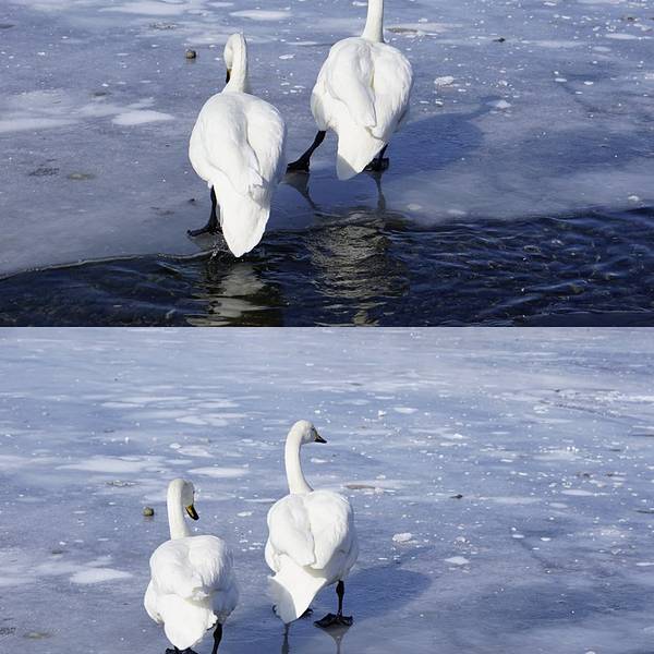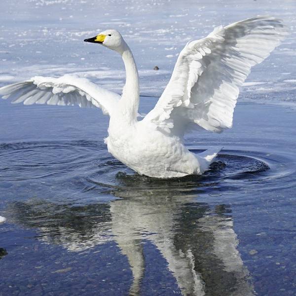 大白鹅惬意在湖面上游走,不会冷噢!