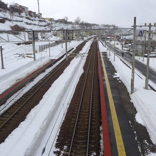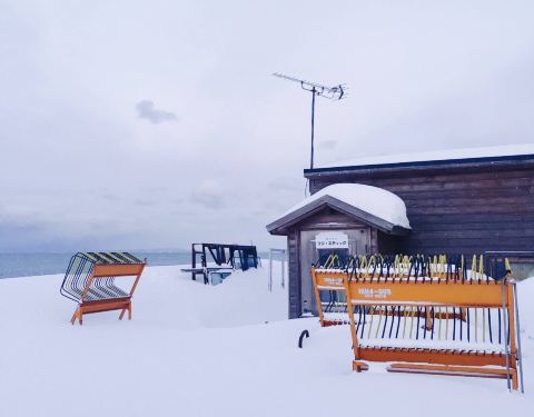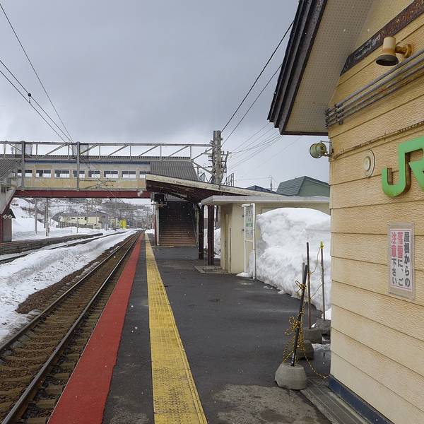 海边,如果天气好的话大海是很美的。铁轨配白雪,这雪也太干净了10点左右到JR站去乘JR,酒店就在边上,这时候的好处就体现出来了,乘2站到朝里川