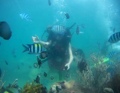 这里面周围的水域并不是特别的深,水质上面的话非常的普通,比起很多东南亚地方,这里只能够算是普普...潜水的时候小黑带过来这个小岛上面了,这里面周围的水域并不是特别的深,水质上面的话非常的普通,比起很多东南亚地方,这里只能够算是普普通通,不过,鱼的种类还是蛮多的,珊瑚虽然算不上是五颜六色,但是也还...潜水的时候小黑带过来这个小岛上面了,这里面周围的水域并不是特别的深,水质上面的话非常的普通,比起很多东南亚地方,这里只能够算是普普通通,不过,鱼的种类还是蛮多的,珊瑚虽然算不上是五颜六色,但是也还是挺多种类。 反正跟一趟这种潜水团的话,也只需要几十块钱,还算是这边比较划算的,90多块,100块都不到,体验一下也还可以的。 展开