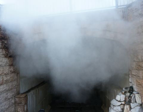公园的亮点是最深处的“间歇泉”,也是整个登别温泉的泉源处,因为存在一定程度的安全隐患,泉眼外是被栅栏围住的,在白天视线好的情况下,隐约还是能看到泉眼一直在沸腾翻滚的动态的。我们从地狱谷回来就遇到间歇泉的大规模的喷发,终于感觉它也可以被称为公园了。