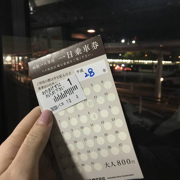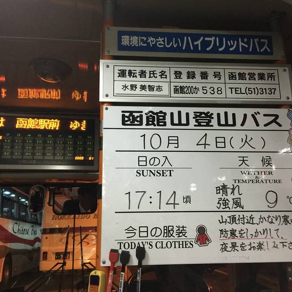 在函馆JR站旁边的巴士总站乘坐"函馆山登山专线",来回800日元,在4号站台乘坐。