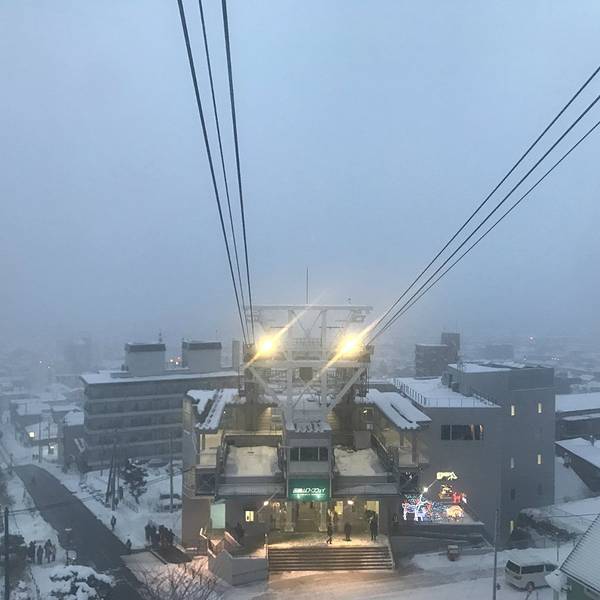人满为患,但是不得不说这里还是一个很可以到此一游的“景点”而登上这座海拔334m小山,也成为来到函馆的人们不可缺少的一种体验。函馆在1988年建成一条登山的专用缆车,往返是1280日元。每到日落的时候,这里就会人满为患,建议伙计们要在日落前的一个半小时就要到达这里。...而登上这座海拔334m小山,也成为来到函馆的人们不可缺少的一种体验。函馆在1988年建成一条登山的专用缆车,往返是1280日元。每到日落的时候,这里就会人满为患,建议伙计们要在日落前的一个半小时就要到达这里。因为晚餐实在吃的太尽兴,以至于比计划的时间晚到一刻钟,没想到就是这一刻钟让我们等待缆车的时间增加了半小时不止,看着那看不到终点的队伍,开始担忧我的百万夜景是不是会就此泡汤。幸好缆车的快速,兜兜转转还是顺利上到这个通往“米其林三星”的缆车。在缆车上的体验就如在北上广挤上下班高峰期地铁时,身边的人群不断的压缩你的空间。不过可以放心的事,这种体验的时间很短,整个缆车的运行过程就在三分钟左右就到山顶。一路上,可以看到函馆湾的日落以及整个函馆的轮廓。