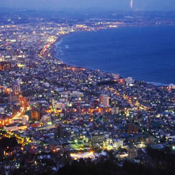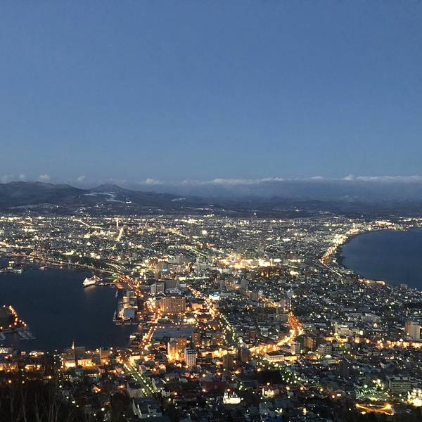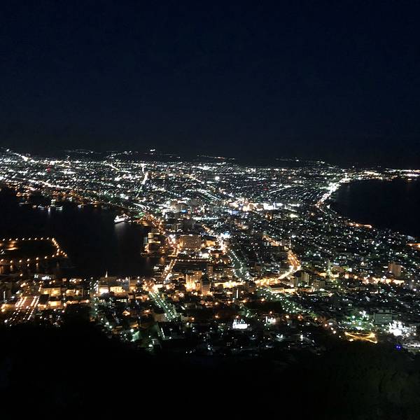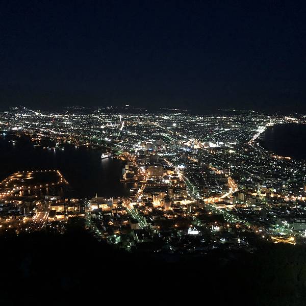 函馆山的夜景非常有名,建议大家可以在日落前到达山顶,在山顶看日落,天慢慢暗下来的同时看到万家灯火的亮起。大约日落后半小时就能欣赏到函馆的夜景。