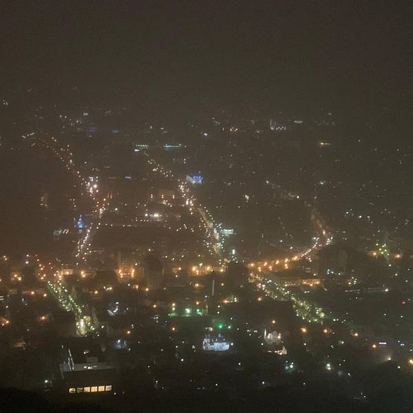 坐车上山的过程中,到爬坡的半路上突然间车内一片漆黑,往窗外望去只见从山间缝隙偷出来的点点灯光,迷醉了眼,一阵一阵的惊叹声从车内传出。