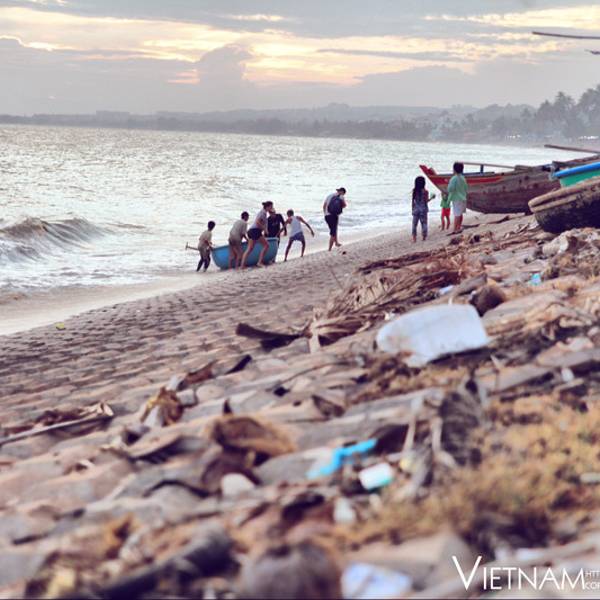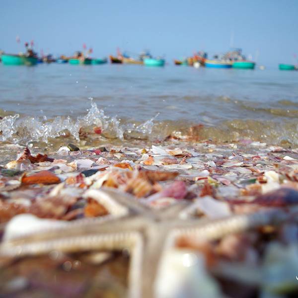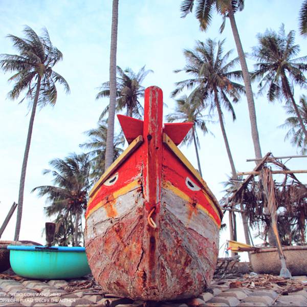 早上的渔村太阳不是很烈,会看见海滩停了许多船,有越南特色的圆盆船。站在堤岸上望下去一片都是渔船,密密麻麻非常的壮观。当地的渔民正在教自家的孩子游泳,海边长大的孩子水性都非常的好。在美奈最难忘的就是贝壳沙滩了,从来没有一个地方的沙滩像渔村的沙滩,铺满了贝壳。感觉这里就是贝壳的埋葬地,贝壳大多都已经碎裂。在沙滩走着会时不时的收货惊喜,遗落的海星,海蟹或是海螺。早上的海鲜不是很多,不过在这里海鲜的价格远远优惠与市区。可以买上一些新鲜的海鲜回去,叫酒店帮忙加工。如果喜欢采购海鲜那就傍晚来吧,晚归的渔民们带着满满的收货。