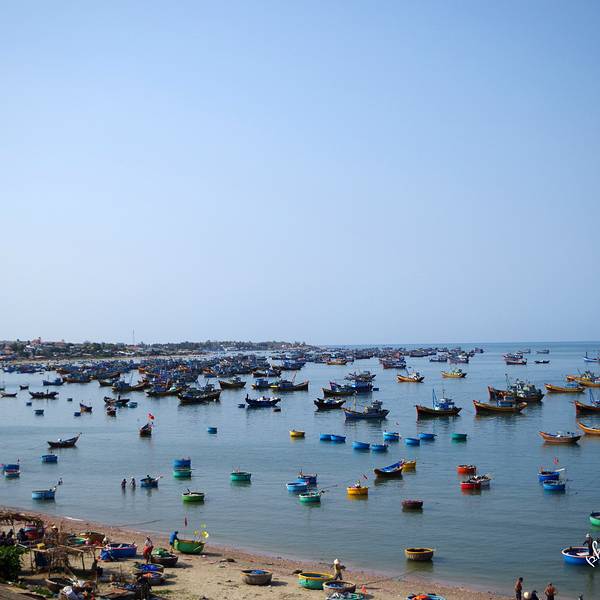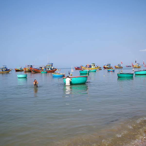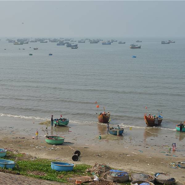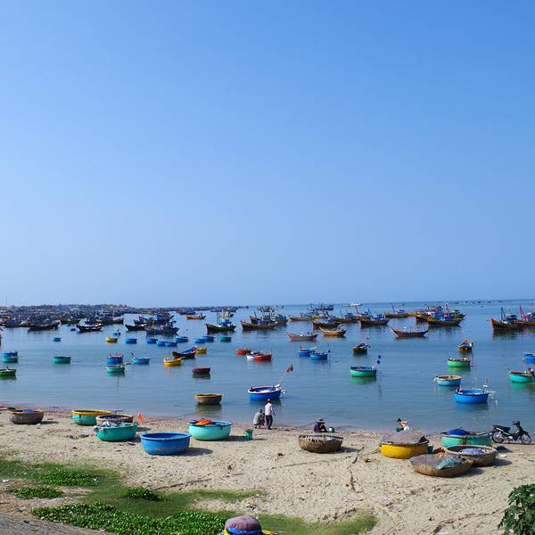 美奈渔村仍旧保持着原始的模样,朴素自然,既是渔港,也是海滩,海水非常宁静,海面上停着各式各样五颜六色大大小小的渔船,远看就像玩具一般。 沿着台阶下到海边,海水伴着海产的腥味扑面而来。打渔的船只来来去去,村民们都埋头在大堆大堆的海产面前劳作。对于喜爱摄影的人来说,这里简直就是天堂,无论是赶海劳作的渔民,拾贝的当地妇女还是野生放养的家畜,都是不错的摄影题材。 观赏渔民劳作 在美奈渔村,你可以观赏渔民一天的劳作,清晨时分,渔民纷纷出海,在海上劳作,傍晚时候,渔民匆匆忙忙地把船靠岸,满载而归。等到渔获分好后,直接在现场分类开卖。大部分的渔获引进到海鲜餐厅,你也可以直接和渔民购买,现场就有待客加工的摊位,可以选择一家吃一顿海鲜餐。 日出与日落 美奈渔村还是看日出与日落的好地方,日出时是美奈一天中较美的时刻,这也是渔民一天忙碌的开始,而当日落时候,渔民们也都归岸,妇女们忙着收拾战利品,而孩子们在海滩上尽情地嬉笑玩耍。