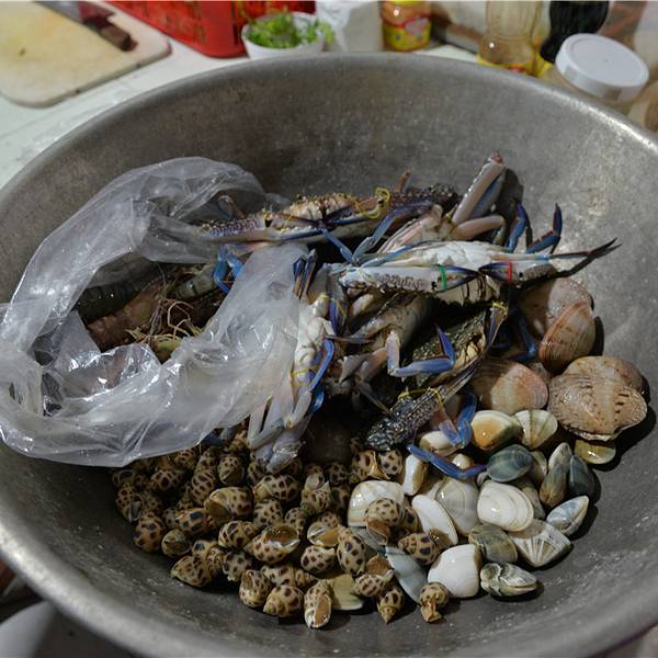 【海鲜费用】15W越南盾可以买一个篮子的海鲜,价廉物美,新鲜食材,世界上最便宜的海鲜之一。