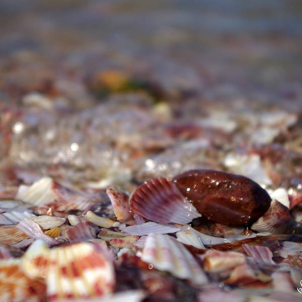 〽️日出时分,金色的阳光投射在布满贝壳的沙滩上!