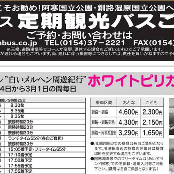 ...贵了,而且下雪天开车安全系数未知,所以“White Pirika阿寒湖巴士”一日游非常适合我们此次去阿寒湖,翻遍全网,选择了道东一日游巴士这条线