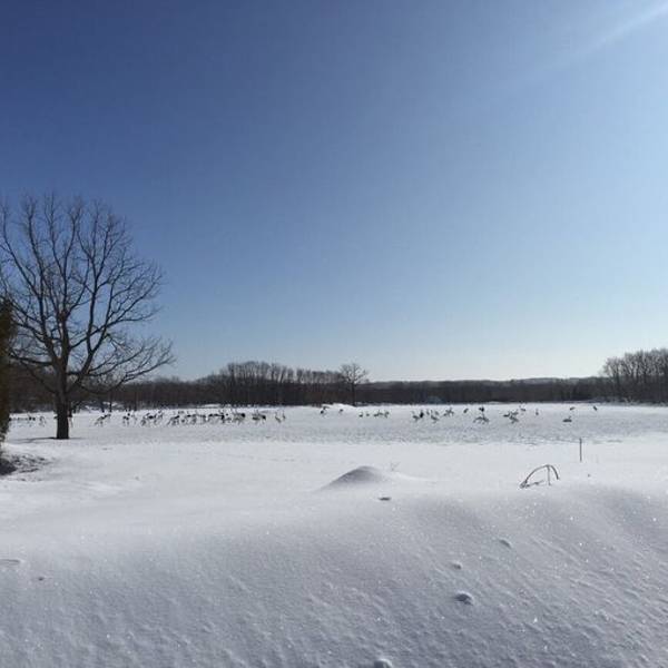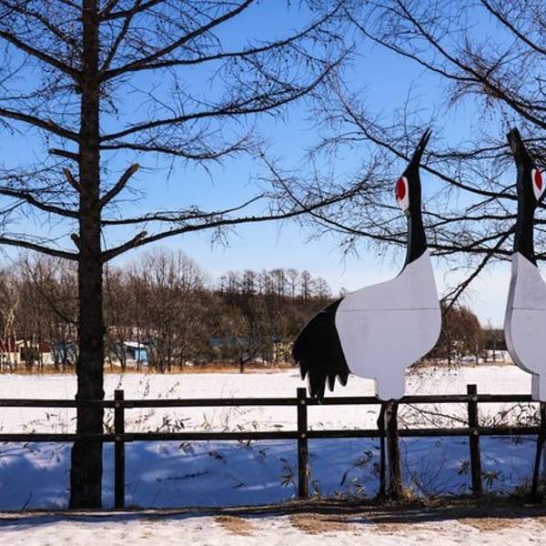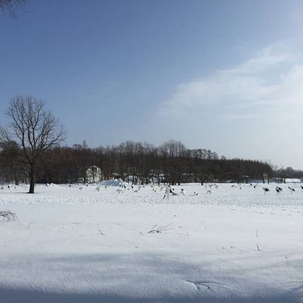 群鹤应该是出去玩了,如果可以提前得知喂食时间,会是最好的观赏时间。鹤见台的入口冬天丹顶鹤都会从西伯利亚飞到钏路的自然公园栖息过冬。北海道的原住民称丹顶鹤为“湿原之神”。来钏路,不可错过的一件事就是看丹顶鹤吧。