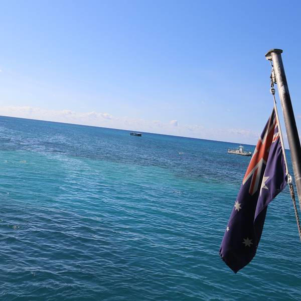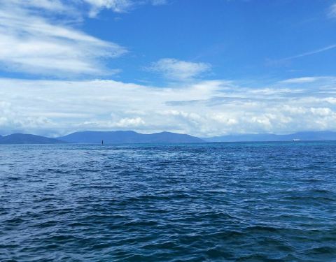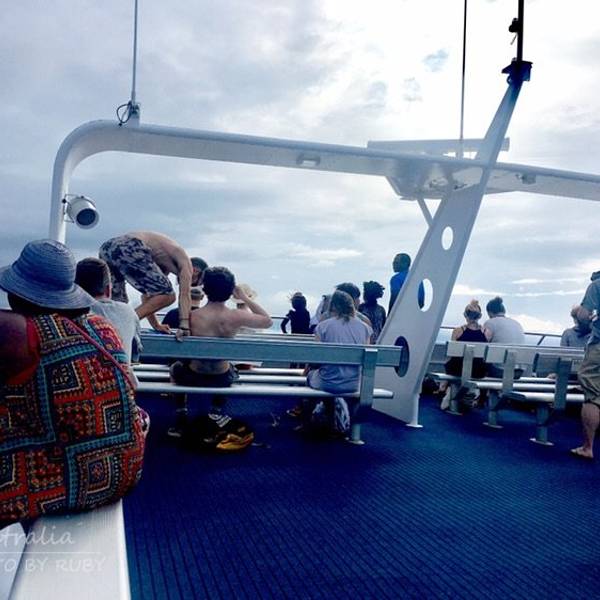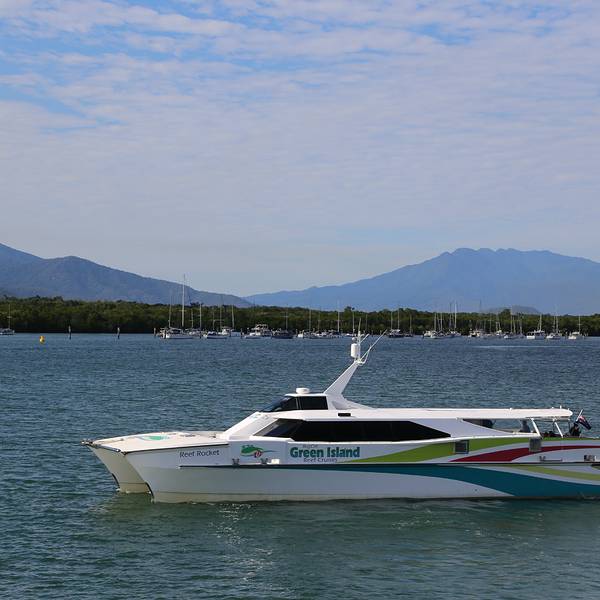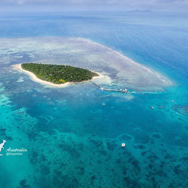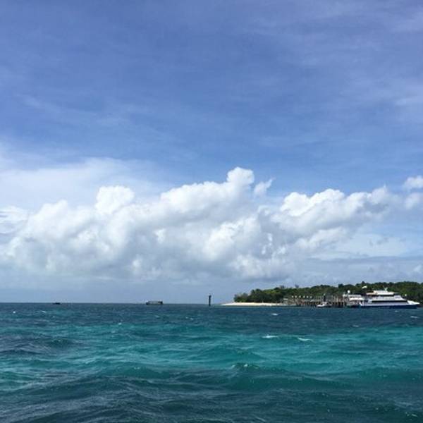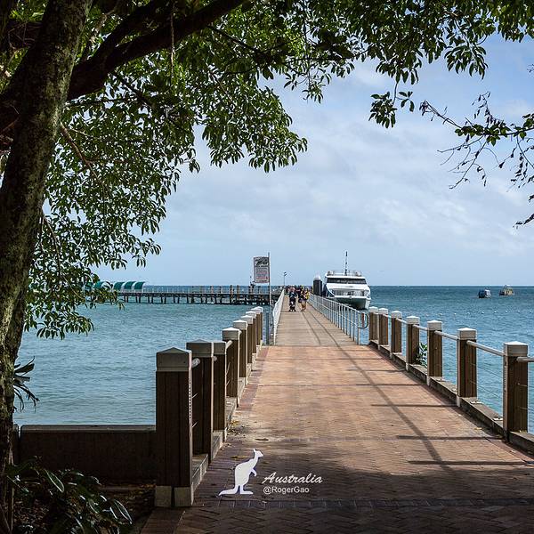 金骆驼 从空中看到的大海与乘船看大海相比较,有着完全不一样的震撼和美感享受我们在礁岛船队码头办理登记及乘船手续。乘坐“礁岛火箭号”,这款全新高速的双体客船从凯恩斯出发,仅仅45分钟的船程便到达了令人精神为之一振的绿岛。
