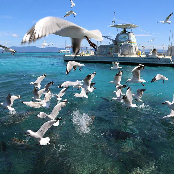 绿岛的好处在于离凯恩斯比较近,乘船大概半个小时左右,所以适合那些晕船的游客,有个缓冲的时间,因为大家可以登岛参观游览。岛上也有一系列的活动,比如浮潜、深潜、半潜艇等等。交通方式:大冒险号(Great Adventures)有双体船定期前往绿岛,8:30、10:30和13:00从凯恩斯出发,12:00、14:30和16:30返回。大冒险号双体船往返船票69澳元起(免费使用岛上游泳池,乘坐玻璃底船观察珍奇珊瑚与丰富热带鱼群以及在绿岛餐厅上享用自助式餐佳肴。并提供多项自费行程可供选择,如海底漫步,直升飞机观光等)。门票:(1)成人:88澳元,儿童:44澳元,家庭:220澳元