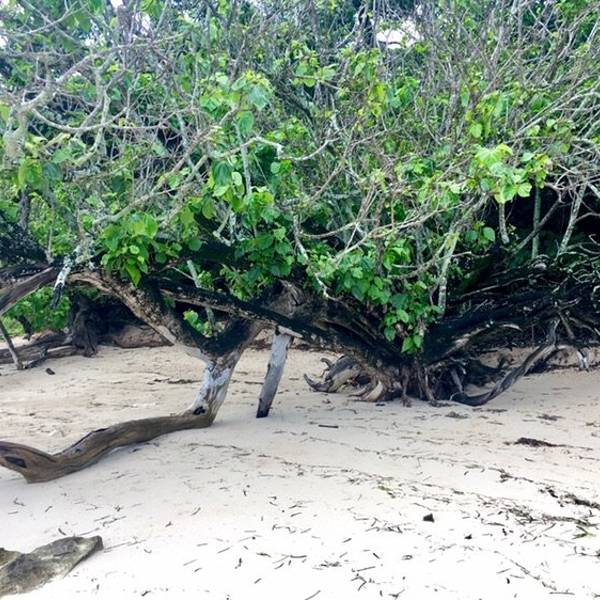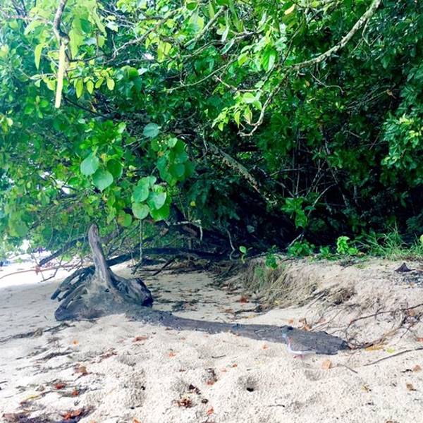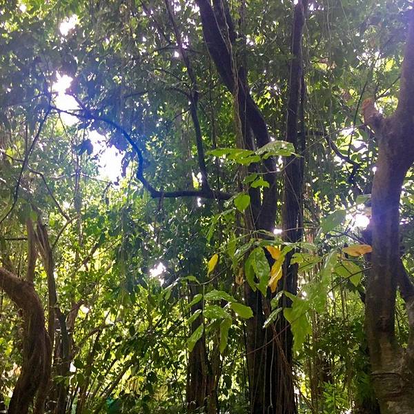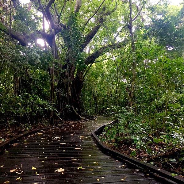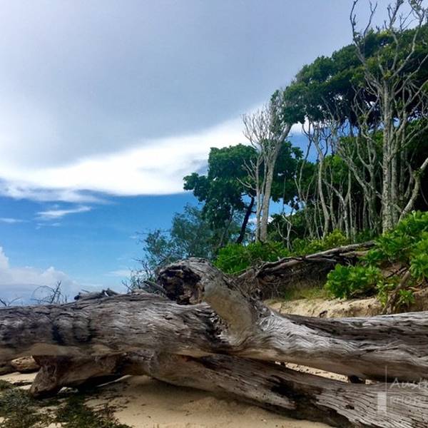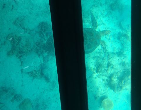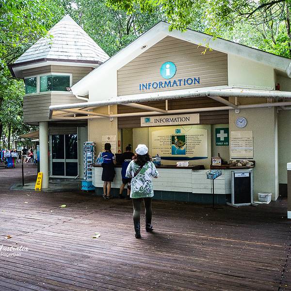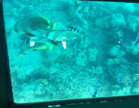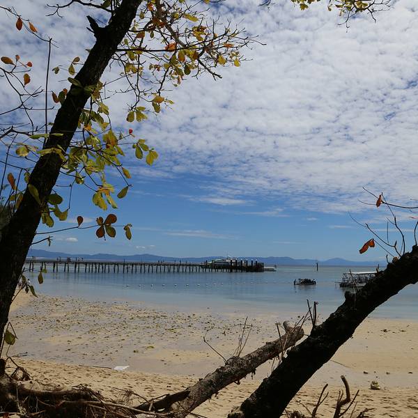 一路上多彩的云,碧蓝的海,让人陶醉,海面上不时有水上滑翔伞、降落伞沿海面徐徐飘过,绿岛靠岸的码头有一座观测站,从此处可观赏海面下的美丽珊瑚与热带游鱼,上岛后,我们凭船票免费坐玻璃底船,出海观看多姿多彩的珊瑚礁和丰富热带鱼群,运气好的话还可遇见海龟,我们的玻璃底船就像移动的玻璃鱼缸,鱼儿、海龟还有成群的鱼种游来游去,真是美妙一刻,玻璃底游船上提供中文服务,介绍绿岛是历经6000多年岁月形成的珊瑚礁岛及海底世界的奇妙,其实岛上还有众多的娱乐项目,如海底漫步,浮潜、半潜水艇欣赏珊瑚礁和东南亚国家常有的水上滑翔伞、降落伞,尤以直升飞机观光大堡礁最为著名,不过每日前往诺曼礁海上浮台观赏大堡礁有名额限制,举目远望,尽是美丽的珊瑚礁,Green Island不愧为“凯恩斯宝石”的美誉,在岛上自助餐厅简单午餐后,沿着绿岛海岸线慢慢散步,绿岛不大,绕行一圈仅需40分钟足矣,迷人的海岸线,绿树成荫小道,给人一种置身于世外桃园的感受,足以让人流连忘返,穿过青翠的绿林,我们来到绿岛外侧的沙滩,细白的沙滩满是晒着阳光浴的人们,我们在沙滩上写下了去哪儿玩的标语,哈哈,累了,买个冰激凌犒劳自己!