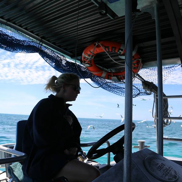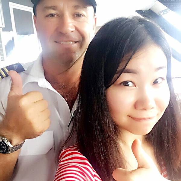 ——这个得搭乘直升飞机才能看到啦!相当热情的船长。。非要和我合影。。非要我坐到驾驶座,帮我拍照。。哈哈。。盛情难却呀。。俺们从小在驾驶室里打转,也是相当熟练哦,就差去舨方向盘子了。不怕晒的妞儿,都跑到甲板上去吹风了。