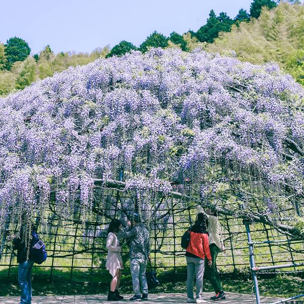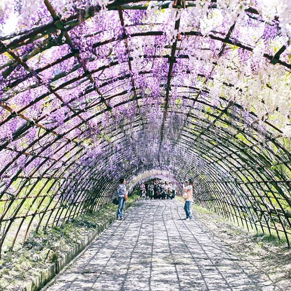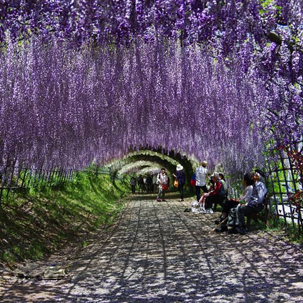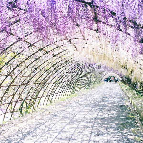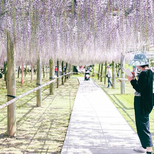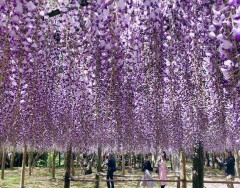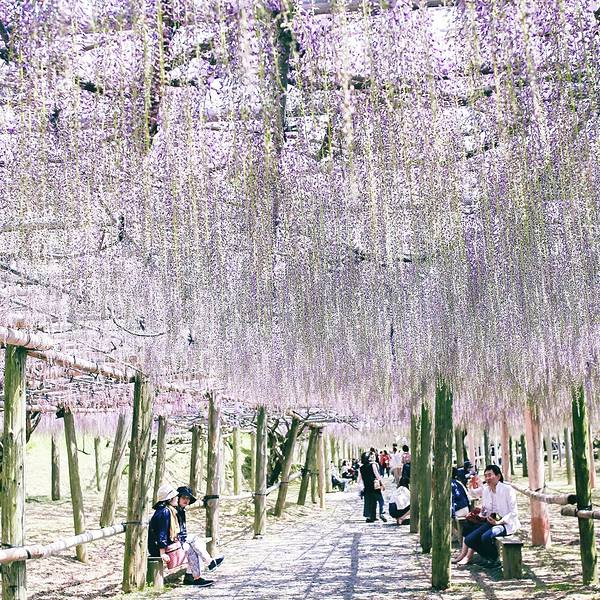 人很多而且大家都忙着跟紫藤花拍照,是个很棒的景点。上次看到这样浪漫的紫藤花,是在澳洲的时候没想到在日本也能看到这样梦幻的紫藤花海,超浪漫、超感动的。上次看到这样浪漫的紫藤花,是在澳洲的时候。人很多而且大家都忙着跟紫藤花拍照,是个很棒的景点