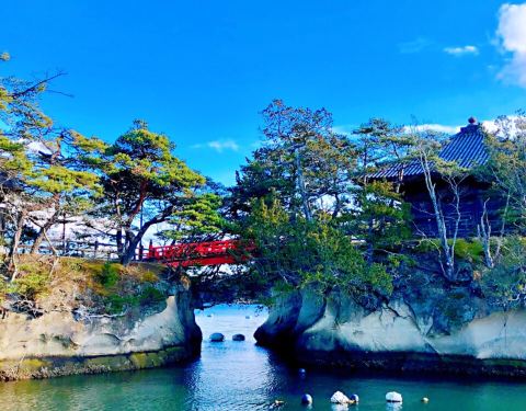 松岛是散布在宫城县中部松岛湾一带的260多个大小岛屿构成的群岛,灰白色的岩石上挺立着茂密的松树,在此可以观赏到日本具有代表性的海湾风貌,并因季节产生各种变化。抵达JR松岛海岸站后,步行约5分钟就到了松岛观光协会,你可以在这里获取一些如地图之类的旅游小册子。搭乘游船巡游松岛湾是主要的游览方式,不仅能在蓝天白云之下轻松饱览诸多小岛的秀美风光,还会看到不少生机勃勃的海鸥。坐游船之余,JR松岛海岸站附近还集中了不少寺院,你可以步行或骑自行车游览。瑞严寺被指定为日本国宝,这里的门扇、楣窗、日式拉门和壁龛的华丽绘画等都非常值得欣赏。周围还有五大堂、观澜亭、圆通院、天麟院等散发着伊达文化气息的古迹。瑞严寺的东北方向有一座新富山,在山顶的展望台可以从正面将松岛湾之景一览无遗,千万不要错过。如果你在樱花季来到松岛,可以去JR松岛海岸站西边的西行折回之松公园。这是松岛有名的赏樱景点,在公园的展望台能欣赏到樱花与松岛湾美景相融一体的绝景,很有情调。在松岛湾的东、南、西、北四个方位还有“四大景观”——大高森、多闻山、扇谷、富山,从这四处可以眺望到不同神态的松岛风光。这四地相隔较远,时间充裕的话可以安排前往其中一处或多处观景。牡蛎是松岛的一大特产,来到松岛别忘了尝一尝 。每年10月-次年3月是松岛牡蛎比较好吃的季节,在此期间会有一家牡蛎小屋(かき小屋)餐厅营业,可以吃到饱。