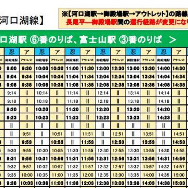 从富士吉田站乘坐巴士约25分钟,从御殿场站乘坐巴士约40分钟。