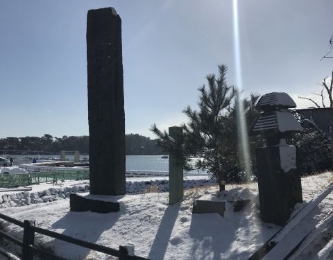 在松岛湾的突起的山岗上,有名为月见崎的风景胜地。16世纪时,武将丰臣秀吉赐予武将伊达政宗的书院式建筑的大茶室观澜亭。政宗的儿子伊达忠宗将其从伏见桃山城,移至了松岛。观澜亭旁的松岛博物馆中,陈列有伊达家、仙台藩的日用器具、服装、军旗、甲胄·盔甲类,美术工艺品,古文书等贵重物品。御座间的五彩障壁画,精彩独特,被指定为重要文化财产。这里还展示有1:5000制作的松岛立体模型,以及栖息于松岛湾内的几千种鱼类和贝类,可从人文、地理的角度,了解松岛地区的历史。边品尝着抹茶和点心(另收费),边欣赏松岛式的风景,亦会是你不错的选择。