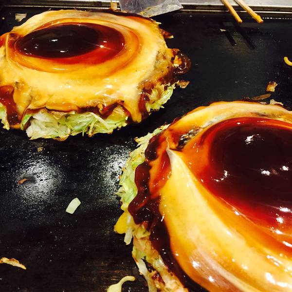 创业60多年的老店铺,历史可追溯到1952年。这里能吃到非常地道的大阪烧。大阪烧的材料非常丰富,可以集猪肉、牛肉、鱿鱼、虾、蟹、鸡蛋于一身,配上满满的卷心菜丝、沙律酱及木鱼片,最后涂上的酱汁用料很足,甜甜的,很入味。外表酥脆,有点焦焦的才好吃,里头松软香嫩,咬下一口,各种食材的组合非常美味。服务员会在你面前制作,大约15-20分钟出炉,每个人的手艺都很娴熟。由于是在铁板上翻炒的,最好点份冰饮,可以降降温。除了具有特色的大阪烧外,炒面也很推荐,会有夏季期间限定款哦。店内座位数挺多,有个临窗的位子很受欢迎,在29楼可以眺望大阪的美景。