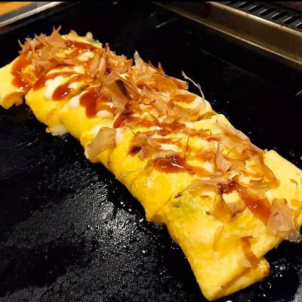 ✔︎玉子烧,其实就是鸡蛋卷。蛋超级嫩,上面的沙拉酱、板烧酱以及木鱼花搭配起来,要连着吃两块才能过瘾~