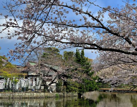真是太美了。每年樱花季节,神社内樱花怒放,一件粉红色的花海,远远就望见了每年樱花季节,神社内樱花怒放,一件粉红色的花海,远远就望见了。 再走入些,便是一个大池塘,岸上是樱花,水中也是樱花,到处都是樱花,美得令人心醉。真是太美了。