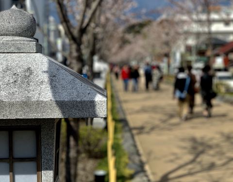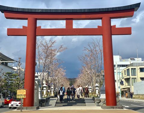 祭祀八幡神的神社,周围工艺品店、老字号餐馆、洋气的咖啡馆应有尽有。