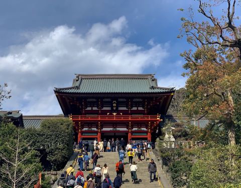 这是一座规模比较大的神社,需要爬一段台阶,地势较高,至今仍是镰仓的标志性建筑之一这是一座规模比较大的神社,需要爬一段台阶,地势较高,至今仍是镰仓的标志性建筑之一。到镰仓必打卡的神社,而且神社前还有很多的小吃摊,参拜吃喝两不误。