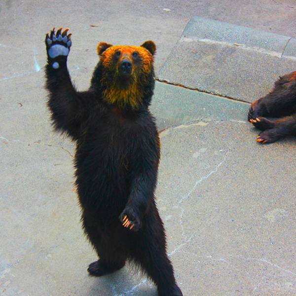 ...爪站立,用前爪向你招手示意,还有些熊会给你作揖,还有的干脆躺在地上,做一些滑稽的动作,以吸引你已经适应了人类的棕熊,知道人们来喂食,撒娇的模样着实可爱。有些熊看到你手里拿着食物就会后爪站立,用前爪向你招手示意,还有些熊会给你作揖,还有的干脆躺在地上,做一些滑稽的动作,以吸引你。