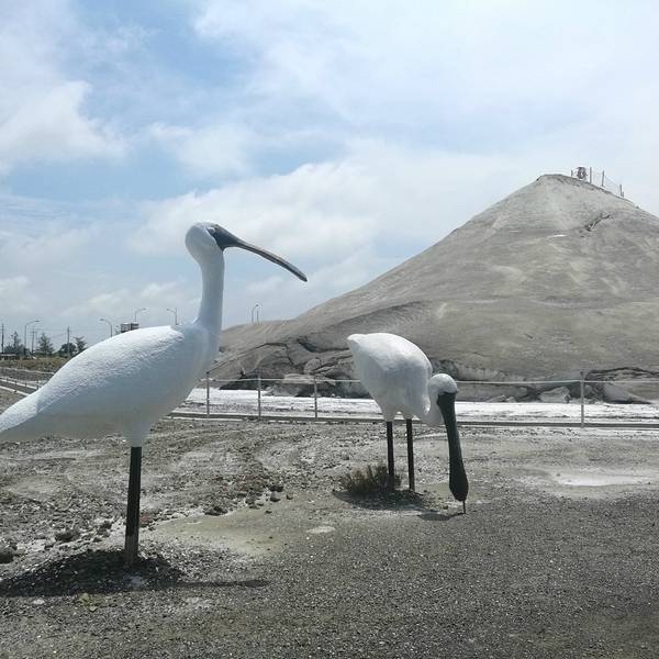 七股盐山,顾名思义,是盐堆起来的小丘,有传说台南终年不见雪,颜色与雪一样洁白的盐满足了台湾人对冬天的幻想(对此说法鳖表示呵呵哒),盐山面积不大,高度也不高,几分钟就能登顶,站在盐堆顶端向四周眺望,眼底尽是晒盐场和鱼塘,恍惚来到崇明...山下还有几个黑脸琵鹭的塑像,这种数量稀少嘴型奇异的白鸟大概是台江最有特色的地方之一,可惜鳖去的时候是夏天,虽然听工作人员介绍说还有几只,但是不知道游荡到哪里,鳖没有看到活的。盐山边有个小卖部出售当地土特产,七股多盐场和鱼塘,买了鱼松和小鱼干,味道不错,盐场棒冰也是当地有名的,大夏天来根过多色素与香精的朴实棒冰拍颇为惬意。还想在周边逛逛,又没有别的公交可以搭乘,盐山小卖部帮忙叫了辆出租车,带鳖去吃了当地的小吃,生蚝混着蔬菜丝油炸而成,去了游船的地方看看,司机介绍坐游船可以包括吃生蚝的环节,有些心动时间却来不及,目测周围很多养蚝的塘,海鲜的新鲜程度有保障。