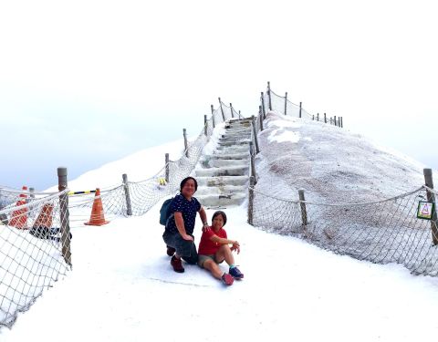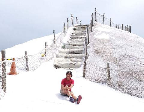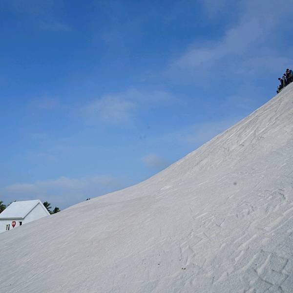 台盐公司转型的观光盐场,提供游客攀爬盐山和购买咸冰棒商品。