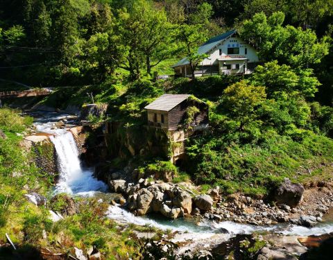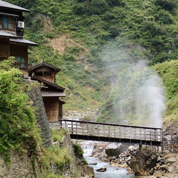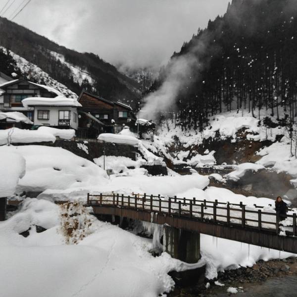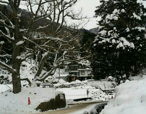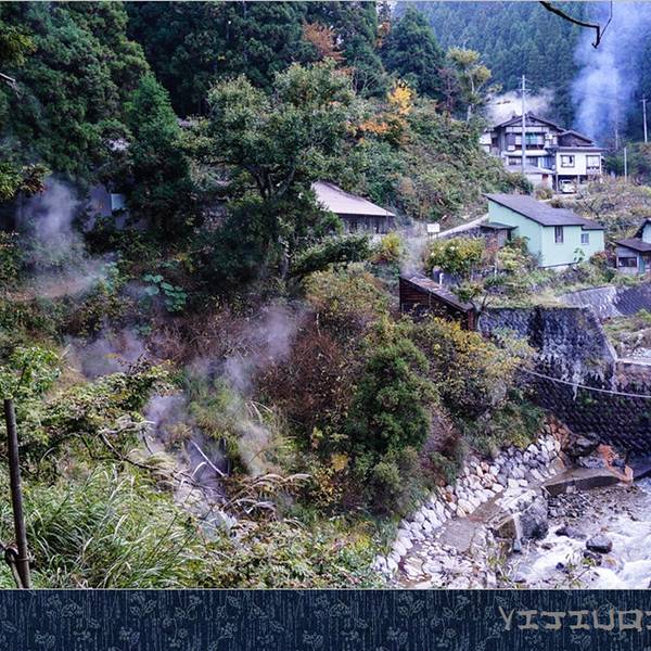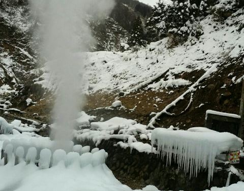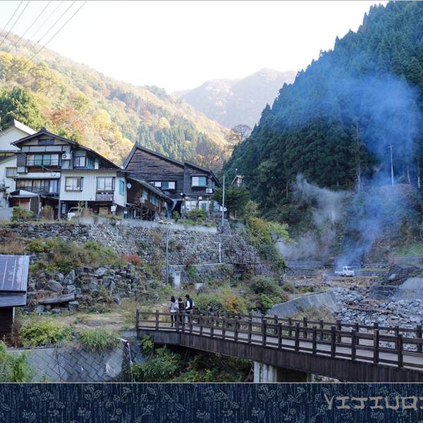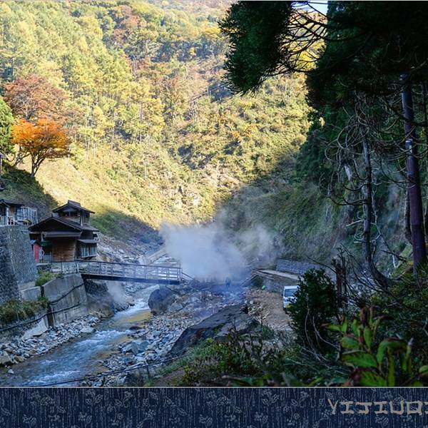 横汤川从东方的山里一路流来,到汤田中附近与来自东南方向的角间川相遇,汇合成夜间濑川。位于汤田中东边横汤川北岸的涉温泉乡,去地狱谷最直接的路就是沿河而上到地狱谷驻车场(有料),这条路春夏秋三季一般小车可以开上去,但冬季就没办法开了,估计只能从南岸绕行。