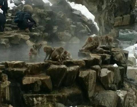 ...蛋,毛茸茸,特别灵敏,赶上工作人员喂食,那抢食场景热闹非凡,谷里有近百只的猴子,特别有趣的体验下午冒着小雨爬山来到地狱谷的野猿公苑,这是日本美景之一,想要看到这些泡温泉的雪猴,需要从汤田中坐15分钟客车到山下,然后爬15分钟坡到入口,再走20分钟山路,才到地狱谷温泉带,然后买了票再走一小段,才能...下午冒着小雨爬山来到地狱谷的野猿公苑,这是日本美景之一,想要看到这些泡温泉的雪猴,需要从汤田中坐15分钟客车到山下,然后爬15分钟坡到入口,再走20分钟山路,才到地狱谷温泉带,然后买了票再走一小段,才能看到这些萌猴,俗称雪猴的它们,喜欢在温泉中取暖嬉戏,猴子们一点不怕人,第一次这么近距离的接触,红屁股的脸蛋,毛茸茸,特别灵敏,赶上工作人员喂食,那抢食场景热闹非凡,谷里有近百只的猴子,特别有趣的体验。这里只给雪猴泡的温泉,说是从前这里的猴子很通人性,看人类泡温泉很舒服,他们也学着泡,这里的人们也很有爱,专门圈出了一块温泉区给它们用,真是温馨! 展开