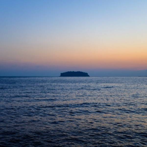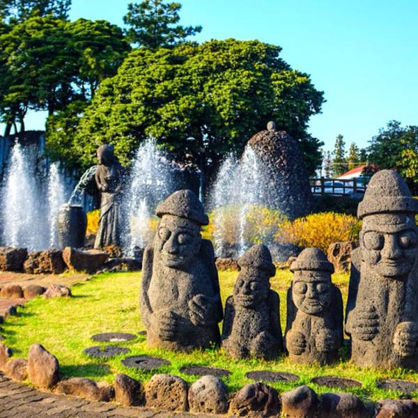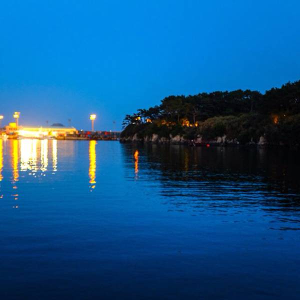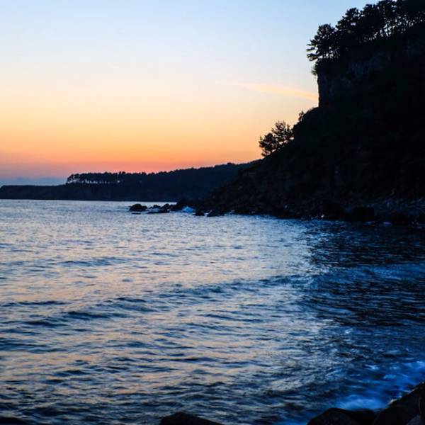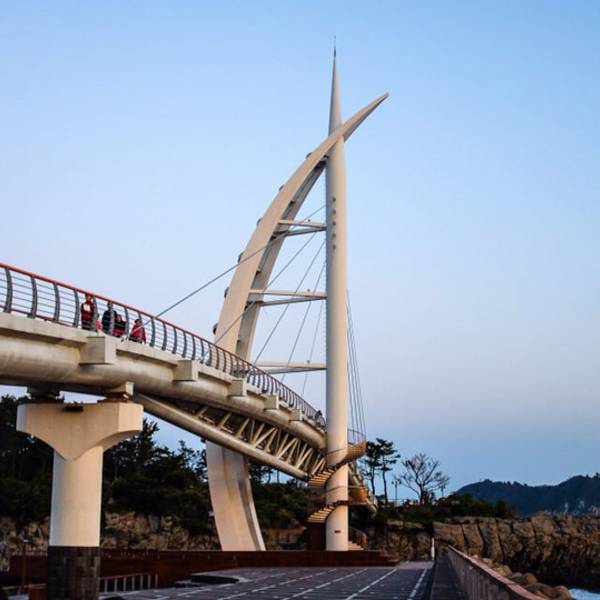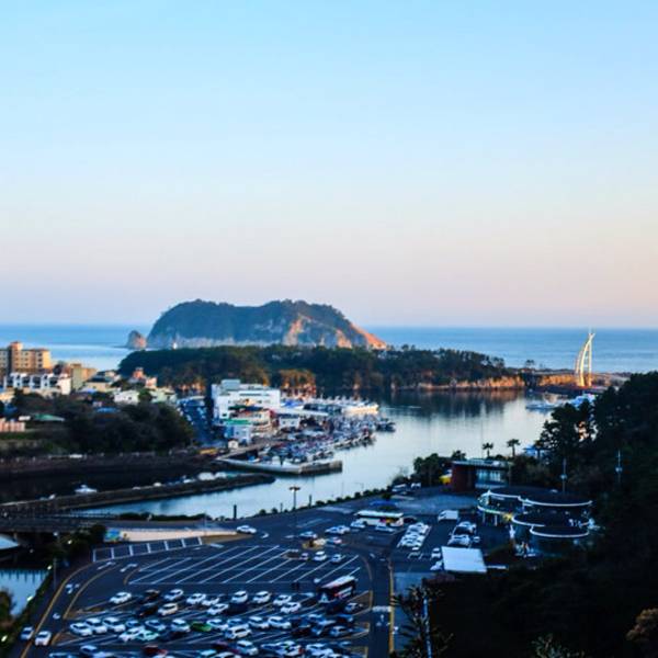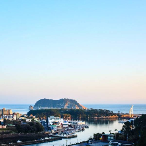 新缘桥和草岛均属于西归浦市立海洋公园。新缘桥将原本互不相接的草岛和西归浦港连接在一起,全长169 米,中央主塔高45 米,远远望去就像一艘扬帆待航的船。“新缘桥”的名称是通过全韩国征名而得来,本意是“途经此桥的人缘分更加深厚”或“途经此桥的人会结识一段新缘”。草岛面积仅105 平方米,海拔高度17.7 米,因没有与陆路相连,岛上的植被保存完好。这里因长有众多茅草而得名,汉字标记为“草岛”,而日本人则认为它像鸟一样飞来而称其为“鸟岛”。1600 年起,这里开始有人居住,直到1965 年又变回无人岛。草岛上有音乐座椅,其背景音乐是以西归浦地区为主题创作的济州民歌,这是连韩国其他地区的人也感到新奇的主题音乐。