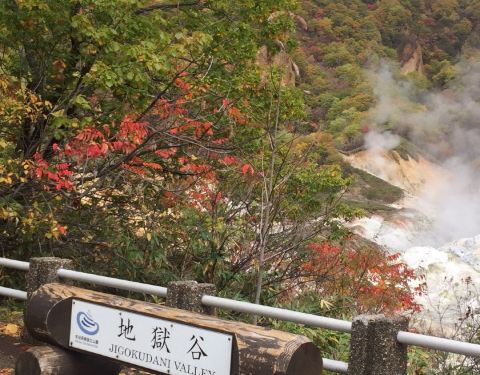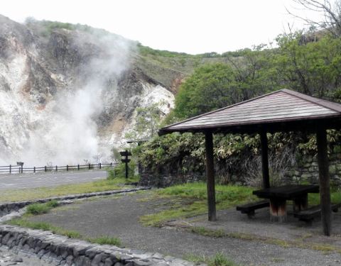 乘坐JR火车到达登别JR站,乘坐道南巴士在[登别温泉街站]下车。然后往地狱谷方向沿步道步行上山。