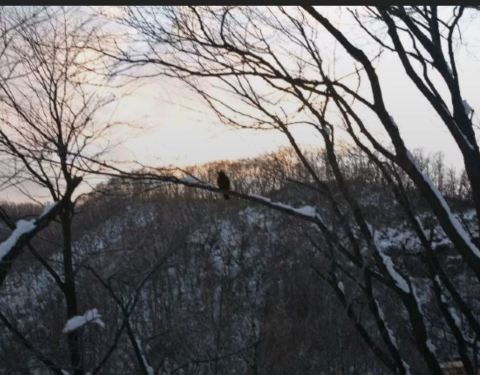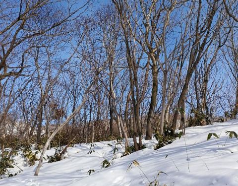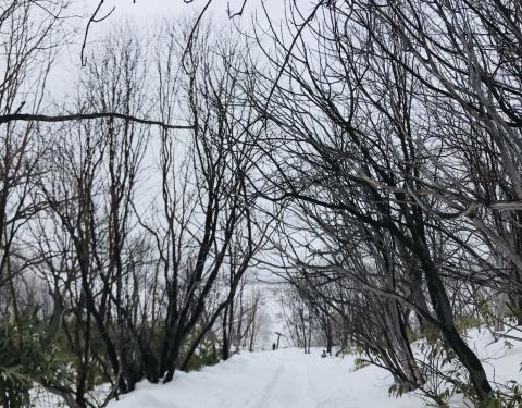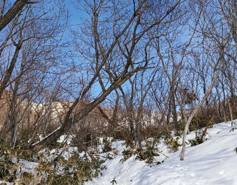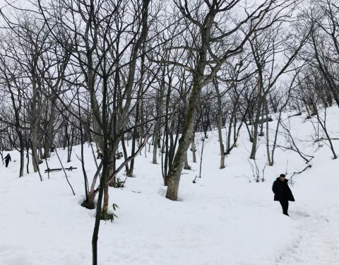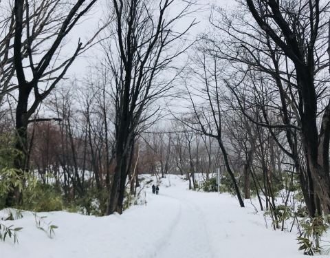 沿着上山的路走进登别原始林,大冬天积雪很厚,大路经过铲雪比较好走,但是小道还是比较滑,需要冰爪...