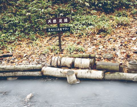 在地狱谷的尽头有一条小路可通往大汤沼、从大汤沼又通向天然足浴汤,这两段路程几乎都在一片森林中穿行。有明确的指路标,不用担心迷路。小路不算难行,但个别路段有些泥泞,我看有些美眉穿着夹脚拖就来了,这是只想着泡天然足浴吧,而忽略了林中小路的天然生态环境。