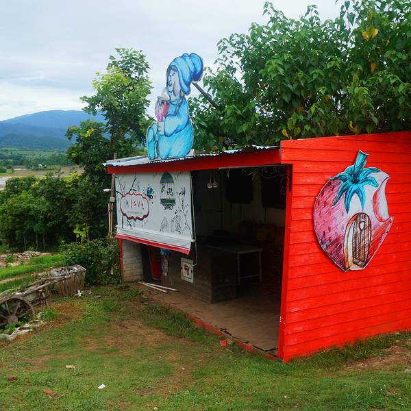 恋爱咖啡馆(coffee in love),往拜县公路旁的一家别致的咖啡馆。因泰国偶像剧“love in Pai”曾在这里取景,而远近驰名。县城内更有旅行社打造一条游览线路“倒立小屋-粉色小筑-大树秋千-恋爱咖啡馆-草莓园-二战...恋爱咖啡馆(coffee in love),往拜县公路旁的一家别致的咖啡馆。因泰国偶像剧“love in Pai”曾在这里取景,而远近驰名。县城内更有旅行社打造一条游览线路“倒立小屋-粉色小筑-大树秋千-恋爱咖啡馆-草莓园-二战纪念桥-树屋”,收费大概100元人民币。