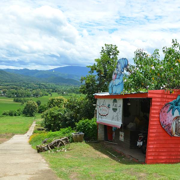 去PAI县的话,coffee in love 是肯定要去的景点之一,这个景点是泰国偶像剧《love in Pai》红的,基本上每个人写游记都一定会有这个景点的图片!这个景点蛮浪漫的,从闹市区到咖啡馆的话一般都是自己租摩托车去的...去PAI县的话,coffee in love 是肯定要去的景点之一,这个景点是泰国偶像剧《love in Pai》红的,基本上每个人写游记都一定会有这个景点的图片!这个景点蛮浪漫的,从闹市区到咖啡馆的话一般都是自己租摩托车去的,大约开到国道上面开个15分钟就能到了,国道上车子很少的,摩托车飙起来特别爽,开摩托车自己去的话肯定不会迷路,因为就沿着国道开就好了,中间也不会有什么岔路。